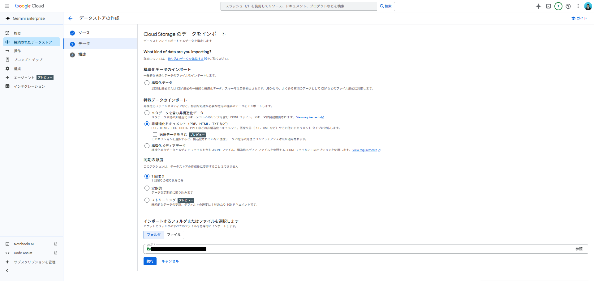 この記事では、Cloud Storageをデータソースにする手順を説明します。