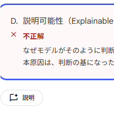 例えば、クイズで間違えた時、あるいは正解した時でも、解説が少し物足りないことがありますよね。そんな時は、すかさずチャットでこう聞きます。また、「テスト」生成機能で作成した問題には「説明」ボタンで聞くこともできます。