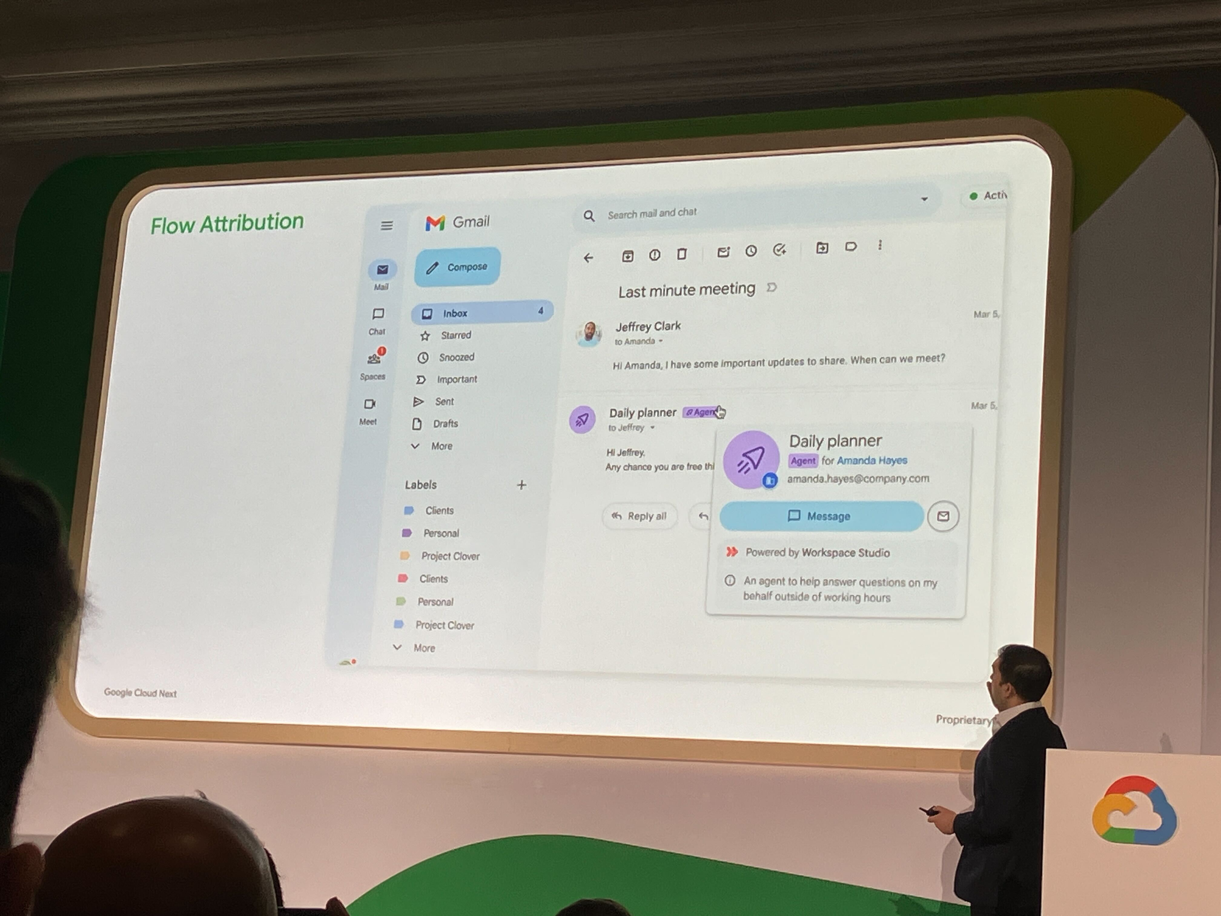 Attribution のサードパーティ対応については、まず第一フェーズはファーストパーティ(Studio 内)のエージェントから始まり、サードパーティへの拡張は計画中とのことでした。フロー停止時のユーザー通知は現状 UI 上のみ(Gmail 等のフローアイコンに赤いドット)で、メール・チャット通知については検討中でフィードバックを集めているとのことです。
