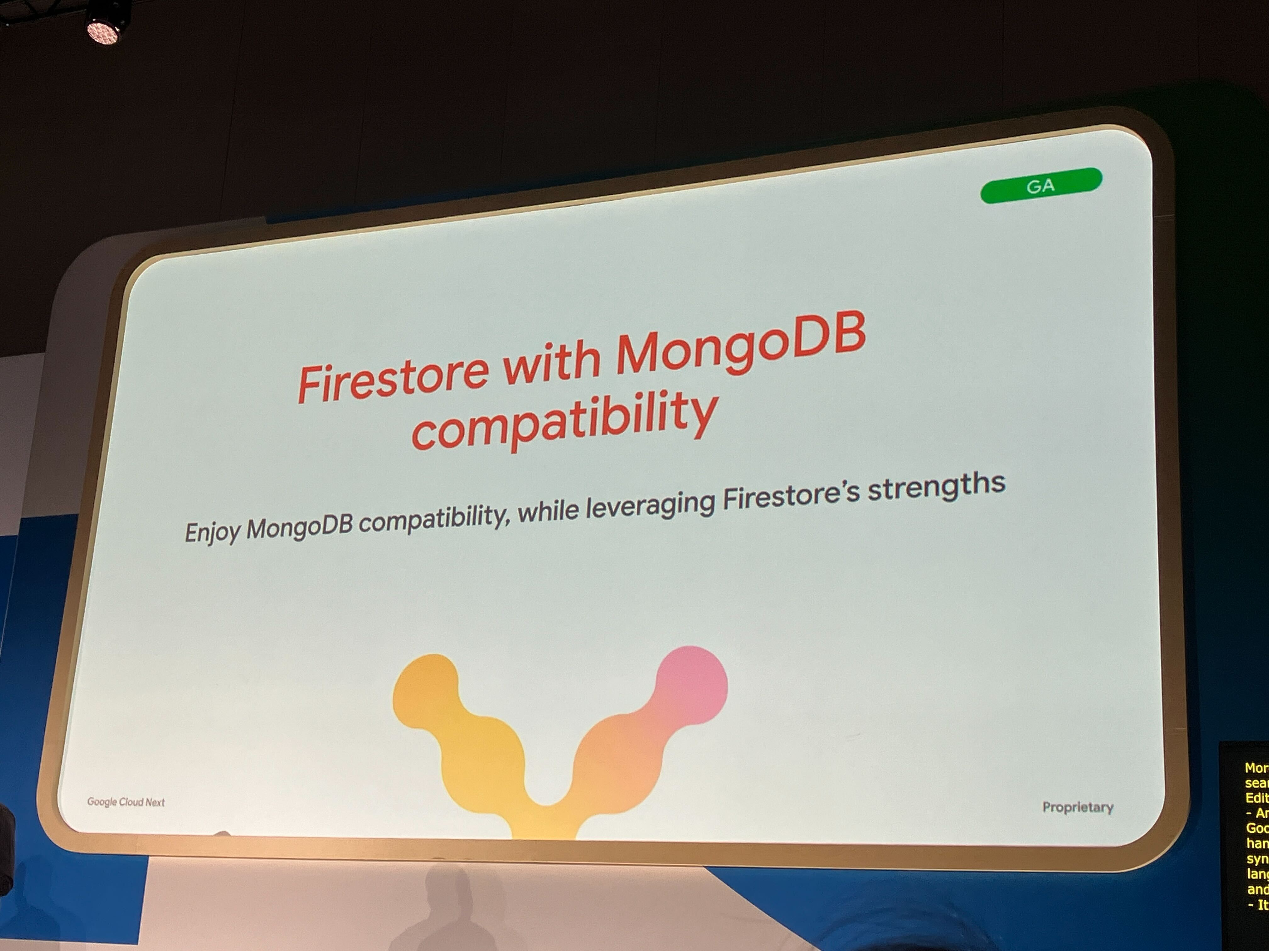 昨年の Google Cloud Next で Preview として発表されていた Firestore の MongoDB 互換モードが GA になりました。MongoDB の API をそのまま使いながら Firestore のインフラ上で動作するため、既存 MongoDB ワークロードの移行コストを抑えられます。