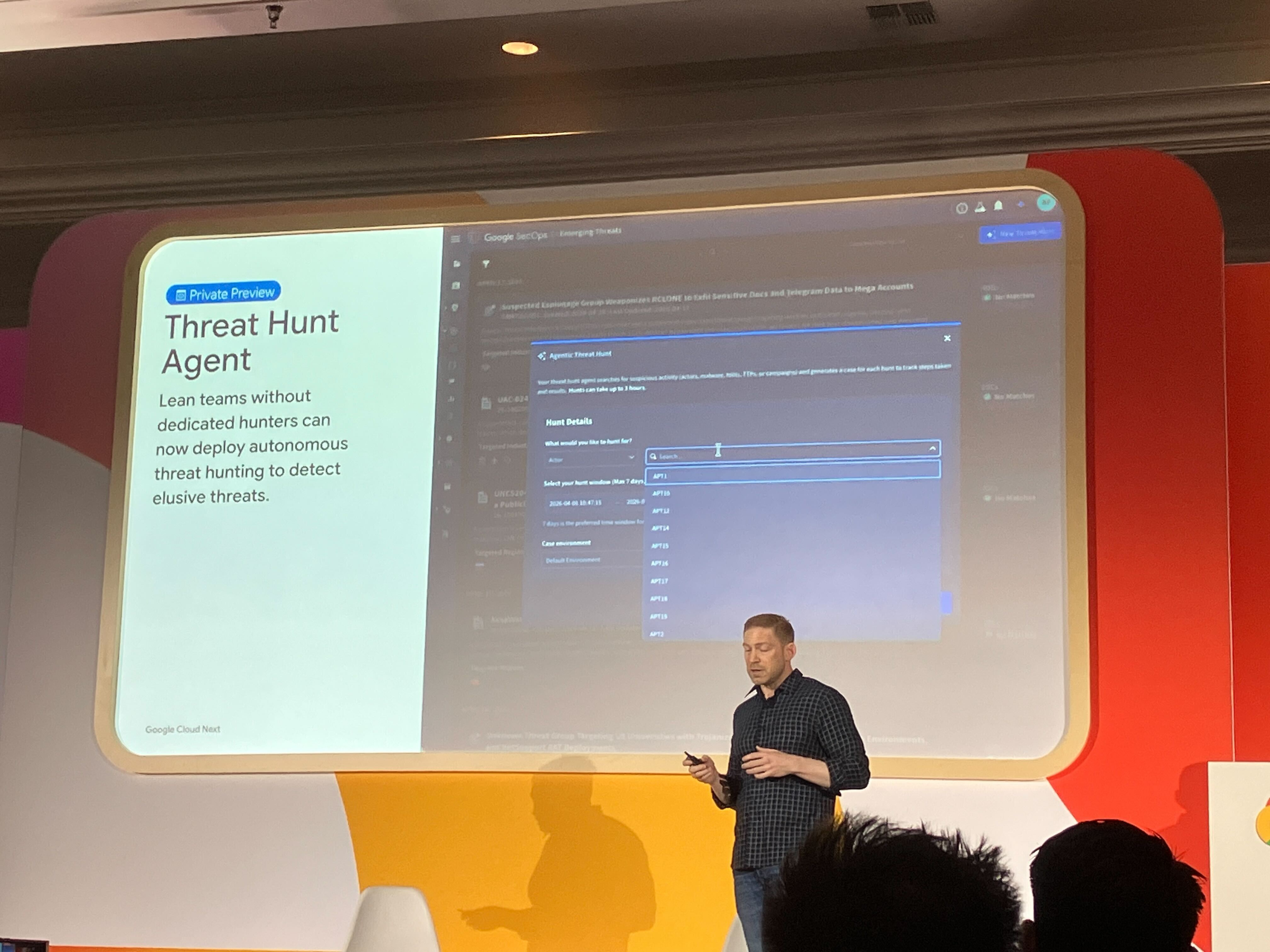 セッション前日に発表されたばかりで、現在Private Preview の Threat Hunting Agent についてもデモが行われました。