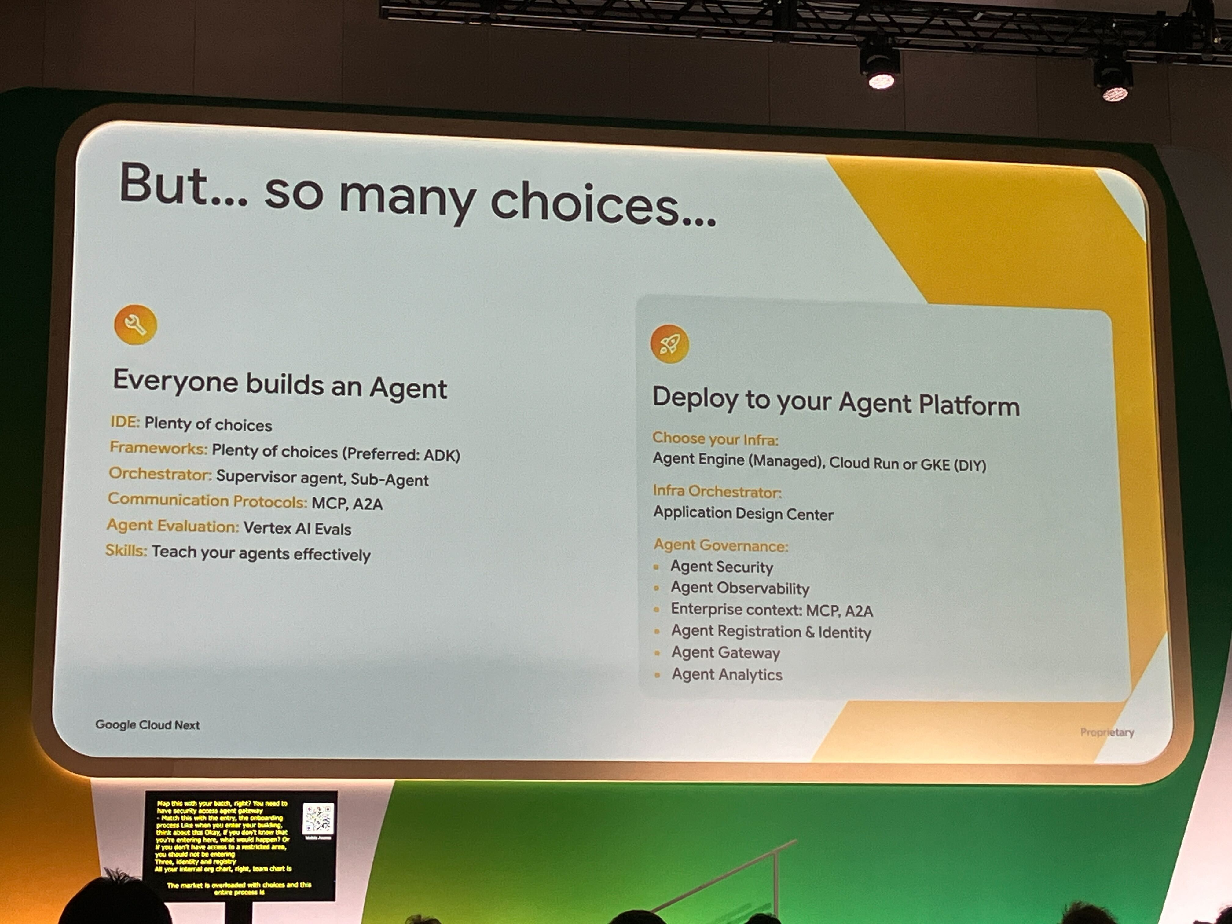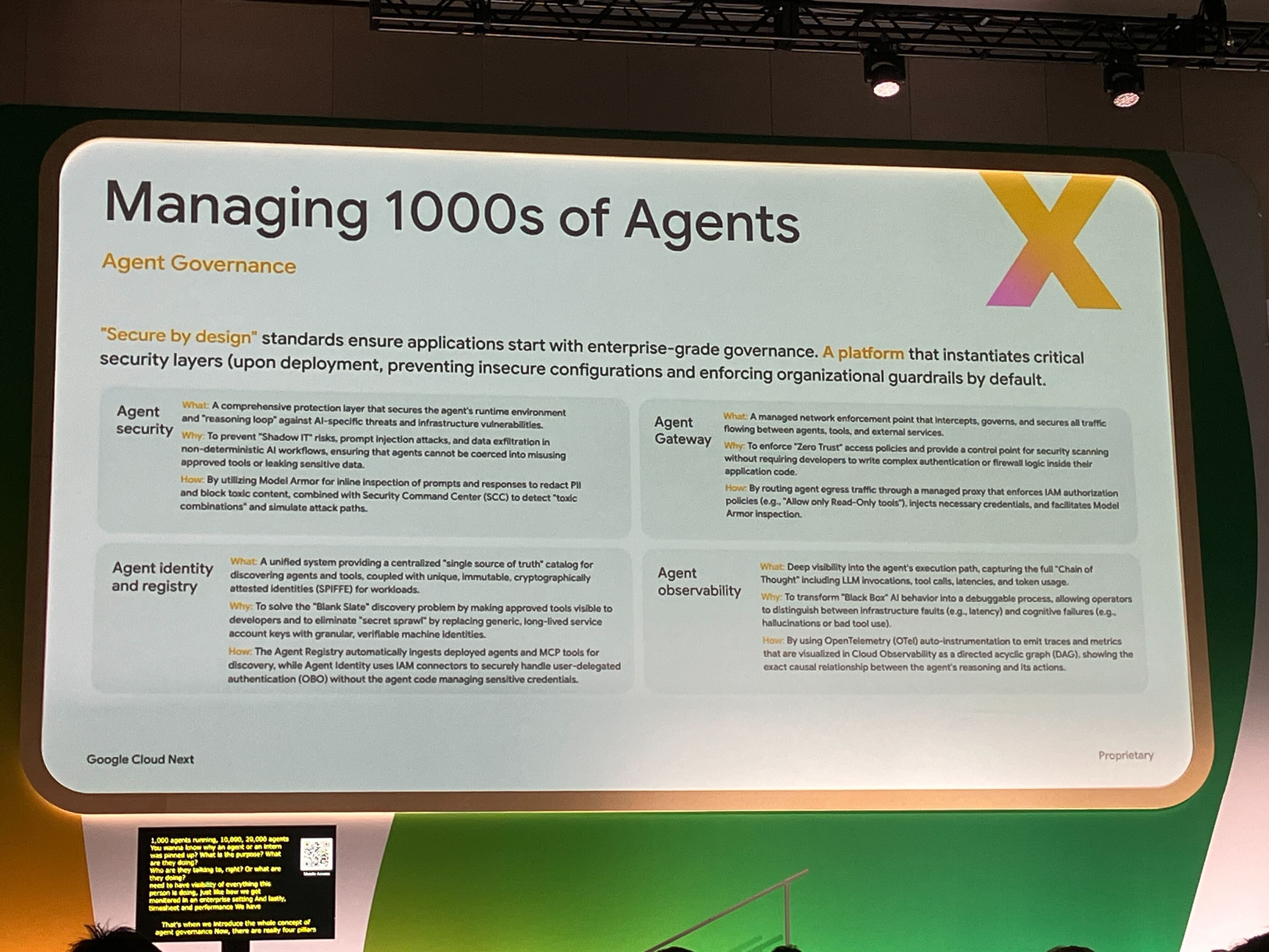 Afrina 氏のパートは、スケールに関心のある組織にとって刺さる内容でした。エージェントを 1 つ作ることと、1,000 個を統治することはまったく別の問題です。そのことを正面から扱ったセッションを聞けたことは記帳だったかなと思います。