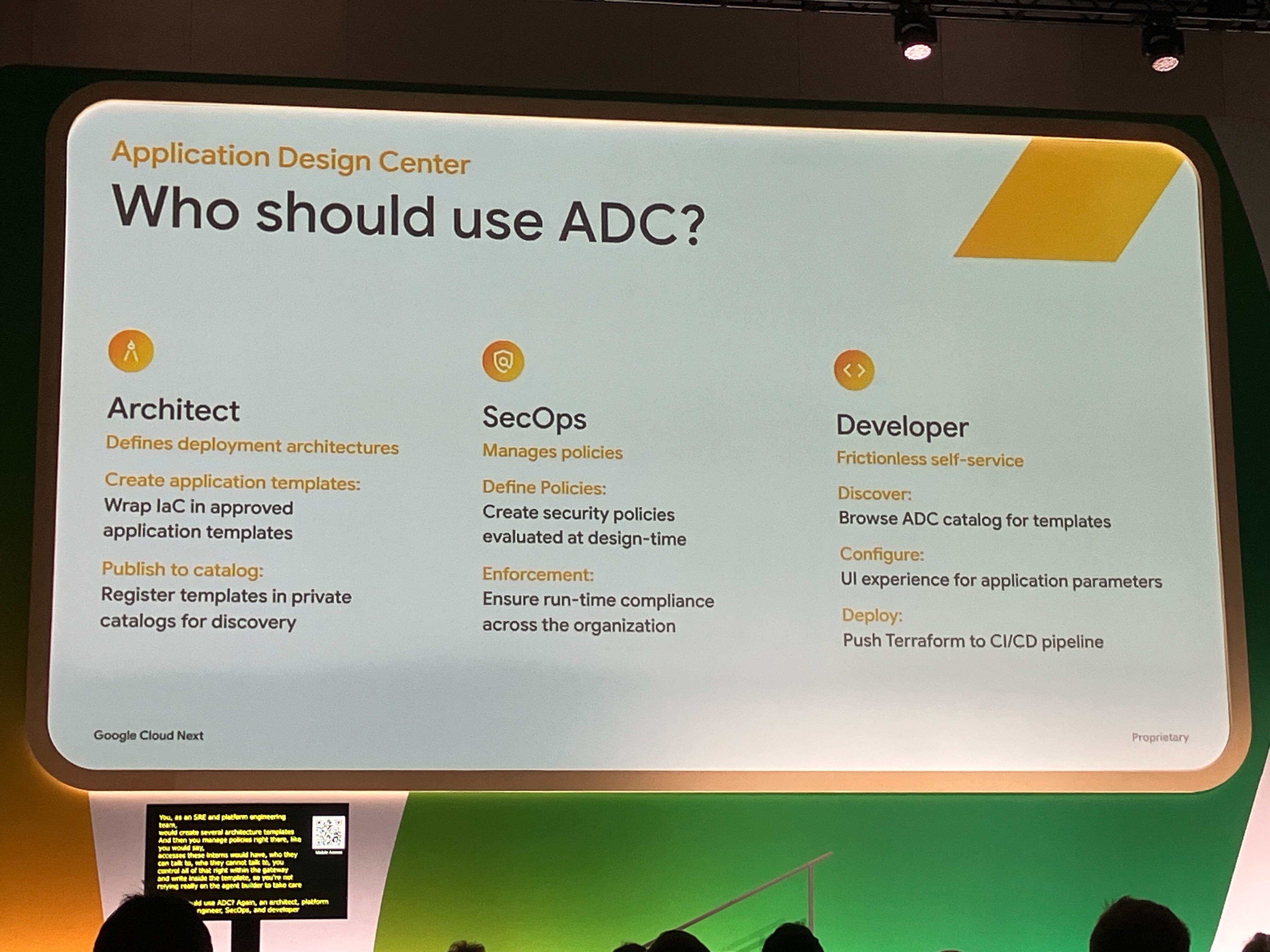 このテンプレート管理の仕組みを実現するのが Application Design Center(ADC)です。Google Cloud ネイティブのツールで、プラットフォームエンジニアや SecOps チームがデプロイアーキテクチャのテンプレートを作成・管理し、開発者はそれをセルフサービスで利用できます。「開発者にとって、ガバナンス周りは全部設定済み。エージェントのロジックを push するだけで本番に出せる状態を作るのが目標だ」と Afrina 氏は締めくくりました。