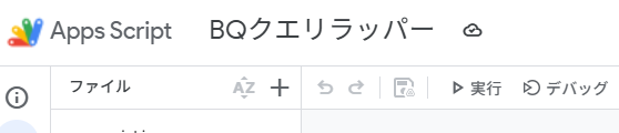 次に、Google Apps Scriptのサイトにアクセスしてください。そして、新しいプロジェクトを作成して適当な名前をつけてください。今回は「BQクエリラッパー」という名前を付けました。