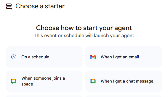 Google Workspace Flowsなら、StarterにGmail、ActionsにGeminiの要約+Chat通知を設定するだけで、数分で仕組み化が可能です。