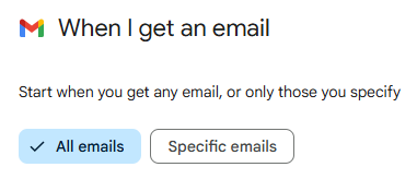 Starterで「When I get an email」を選択して、「All emails」を選択します。