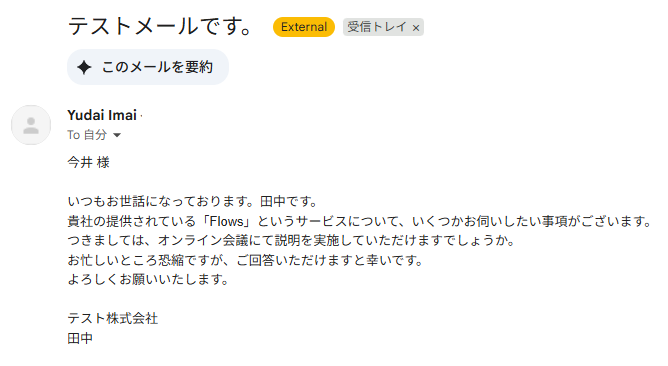 試しに、自分に対して以下のようなテストメールを送信してみました。