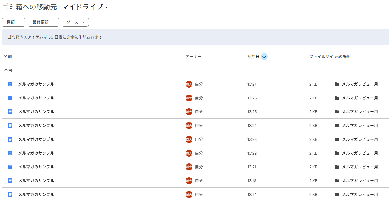 上記のブログではファイルが削除されているかまでは画像で見せておりませんが、以下の画像のようにレビューの結果スコアが足りなかった残骸のファイルがゴミ箱に移動させられていることがわかると思います。