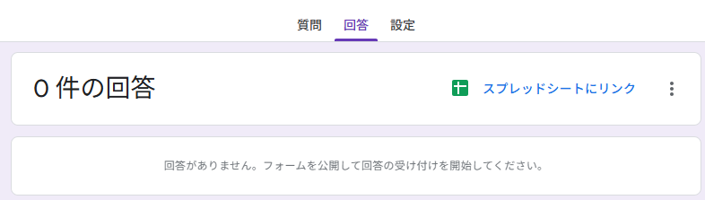 マニュアルマスタの更新依頼をするためのGoogle Formを準備します。「社内マニュアル追加・更新申請フォーム」という名前のシンプルに3つの必須の回答項目のあるフォームを準備します。そして回答のタブから「スプレッドシートにリンク」ボタンを押してスプレッドシートを作成します。