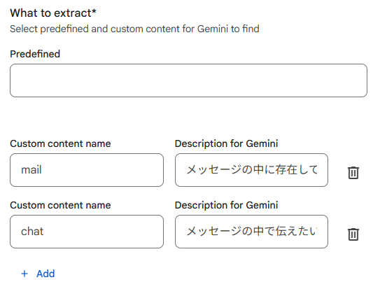 そして、What to extractではCustom content nameを以下の2つの項目を設定してください。