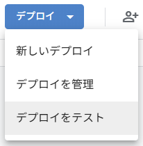 すべての保存が完了したら画面右上にある「デプロイ」ボタンを選択した後に、「デプロイをテスト」を選択してください。