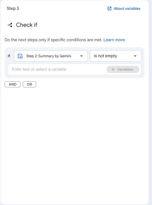 直前のサマライズのプロンプトのおかげでシンプルです。サマリーが空でなかったら処理をする分岐です。