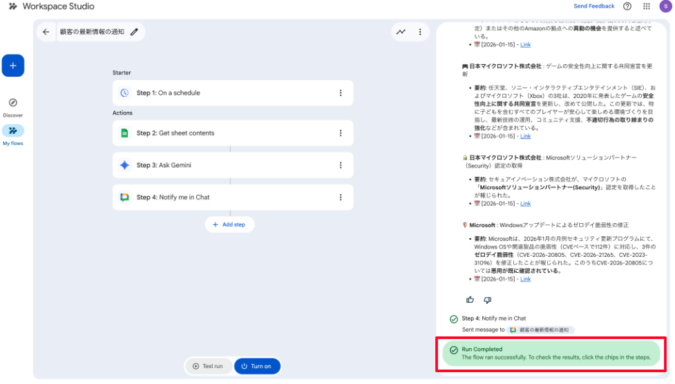今回は、Google Workspace Studio を活用して、自分専用の「AIニュースアシスタント」を構築しました。