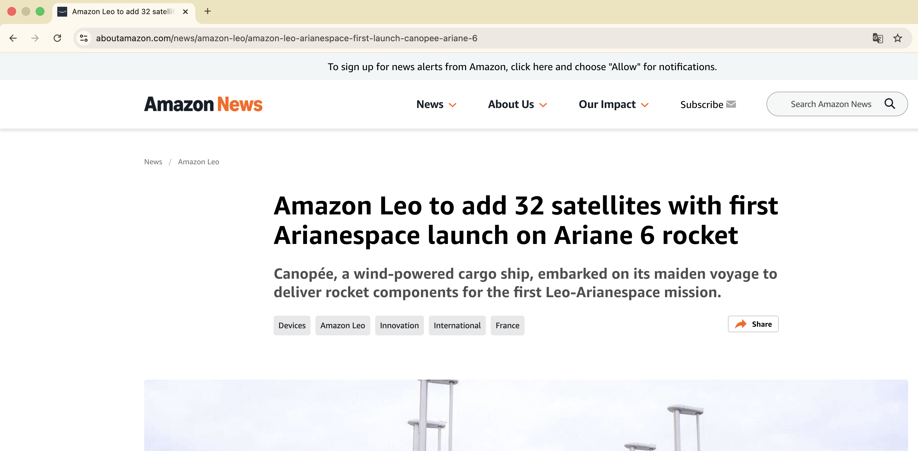 さらに、通知文中の「Link」をクリックすると、ニュース元の記事本文を直接確認できることもテストできました。