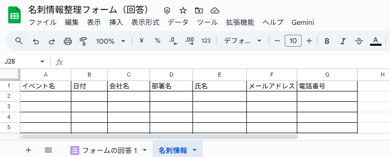 名刺収集用のGoogleフォームとスプレッドシートの準備