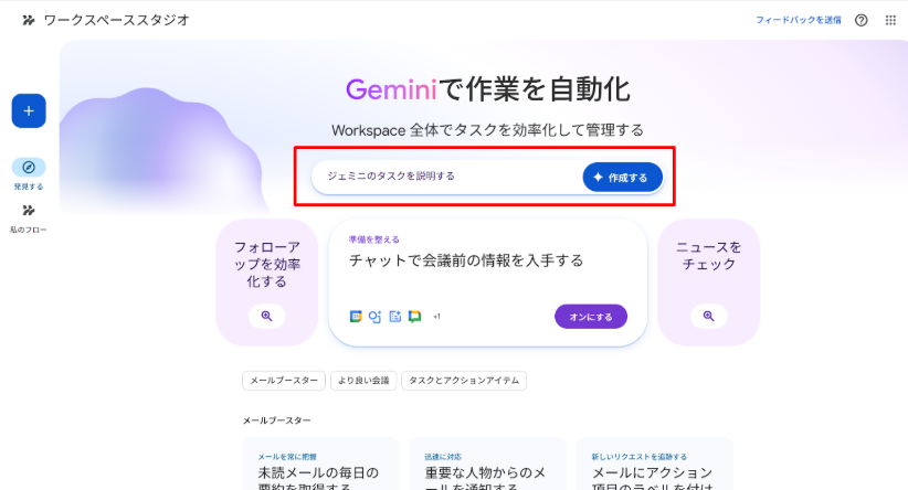 | 実現すること | Google Workspace Studioについて知る |