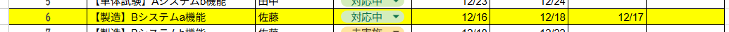 上記のような表示に切り替わったらエージェント有効化完了です。実際にスプレッドシートを変更してエージェントを実行しましょう。今回は黄色に塗った行の「ステータス」を「対応中」に変更してみます。