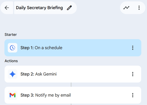 Studioでは、フロー構築とGeminiへの自然言語指示により、Google Workspace サービスを主軸としたルーチンタスクを実施してくれます。