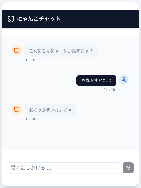 今回は、猫と戯れてるようなチャットアプリを作ります。