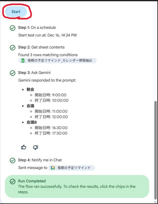 - この基本フローを応用し、通知をChatルームに送ってチームに共有したり、特定のキーワードを含む予定だけを抽出したりするなど、自由な拡張が可能です。
