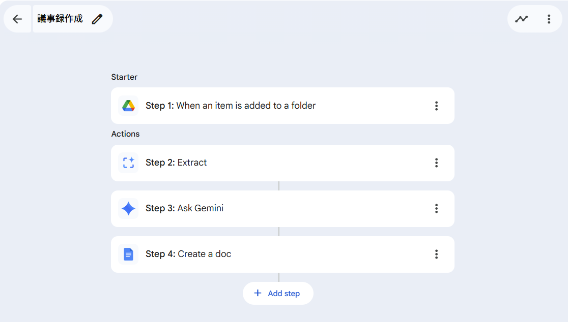 会議が終わるたびに、殴り書きのメモを眺めて溜め息をつく時間はもう必要ありません。 Workspace Studioで「フォルダへの追加」をトリガーに清書を自動化しておけば、オンボーディングでの情報共有やチームの意思決定の棚卸しといった場面で即活用できる、信頼性の高い議事録が自動で蓄積されます。