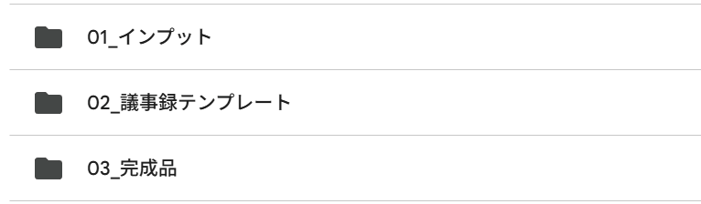 「02_議事録テンプレート」フォルダには、あなたが使用する議事録のテンプレートドキュメントを格納しておいてください。