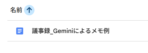 また、「01_インプット」フォルダには、あらかじめ”Geminiによるメモ例”を格納しておいてください。実際に書き留めたメモで構いません。このフォルダにメモを格納したら即座に議事録が作成されることがゴールですが、テスト実行のために予め格納しておきます。