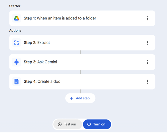 Content to addには、「Step 3: Content created by Gemini」を選択。